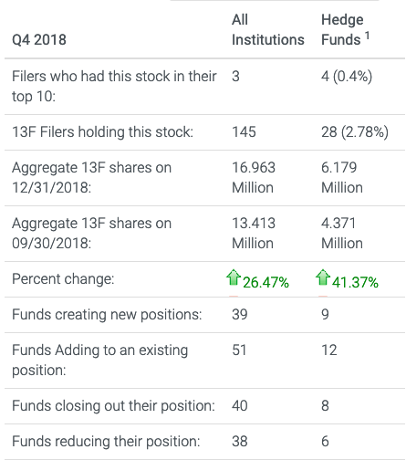 Institutional investors aggressively accumulated Health Insurance Innovations stock in Q4 of 2018, increasing 13F holdings of HIIQ by 41.37%.