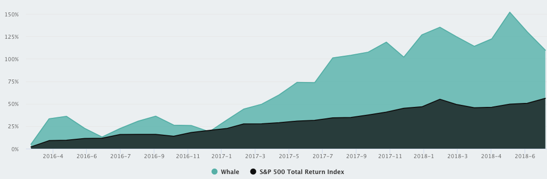 Despite the down quarter, if you’d cloned Tiger Pacific Capital’s top ten holdings since the firm filed its first 13F in the 4th quarter of 2015, you’d still be up 93%. Below is a chart showing Tiger Pacific Capital’s performance since the first quarter of 2016 (light green) versus the S&P 500’s total return (dark green).